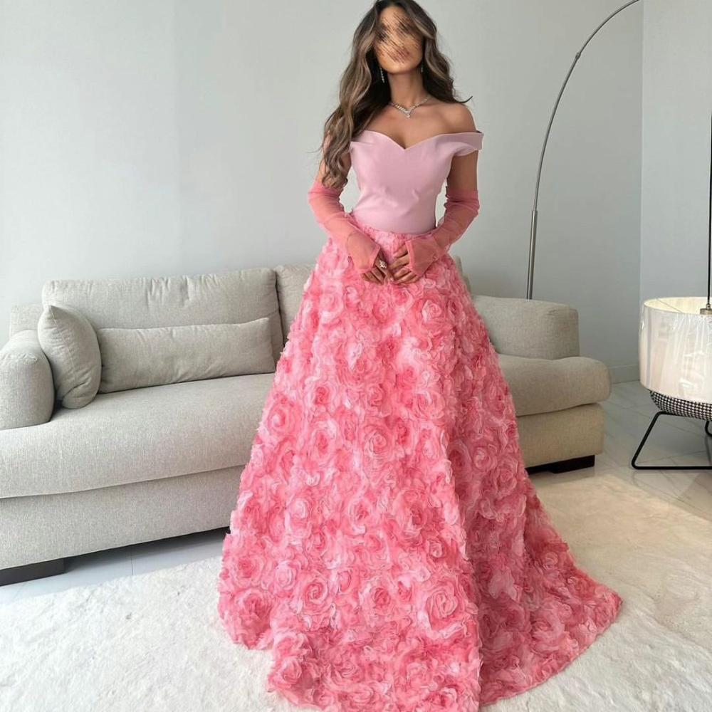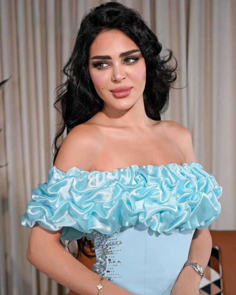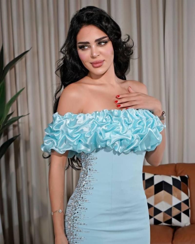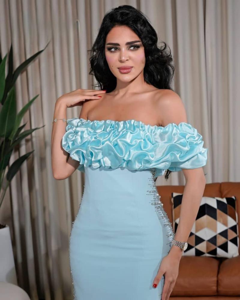 •الصدر: تصميم أوف شولدر (Off-Shoulder) بلمسات كشكش